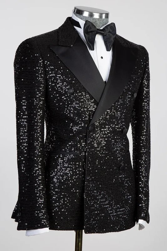 Sequins Black Double-breasted 2-piece Tuxedo