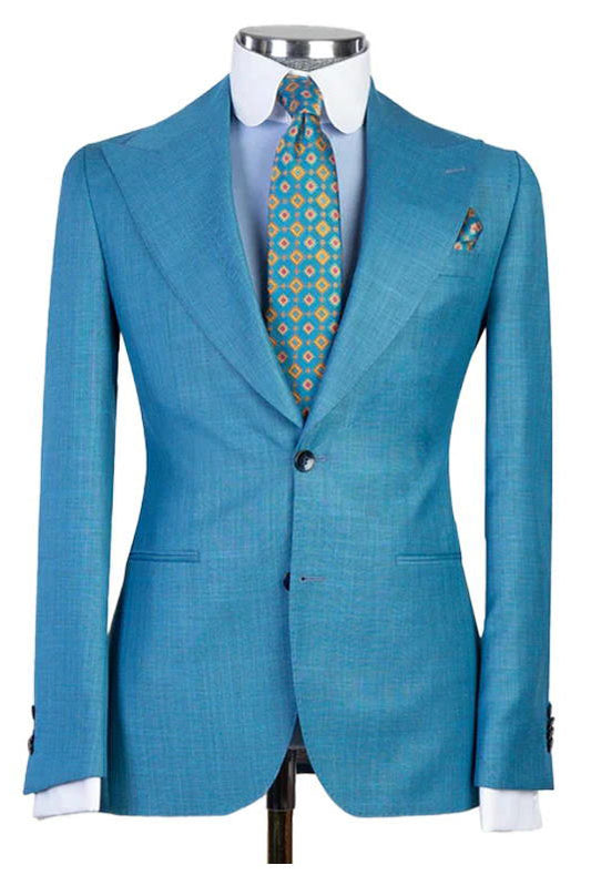 Blue 3-Piece Suit Peak Lapel Single Breasted Suit