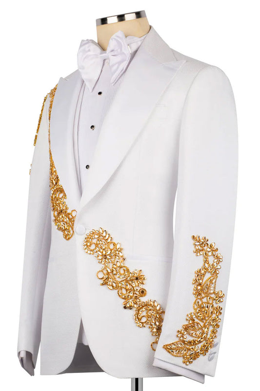 White One-button 3-piece Tuxedo with Appliques