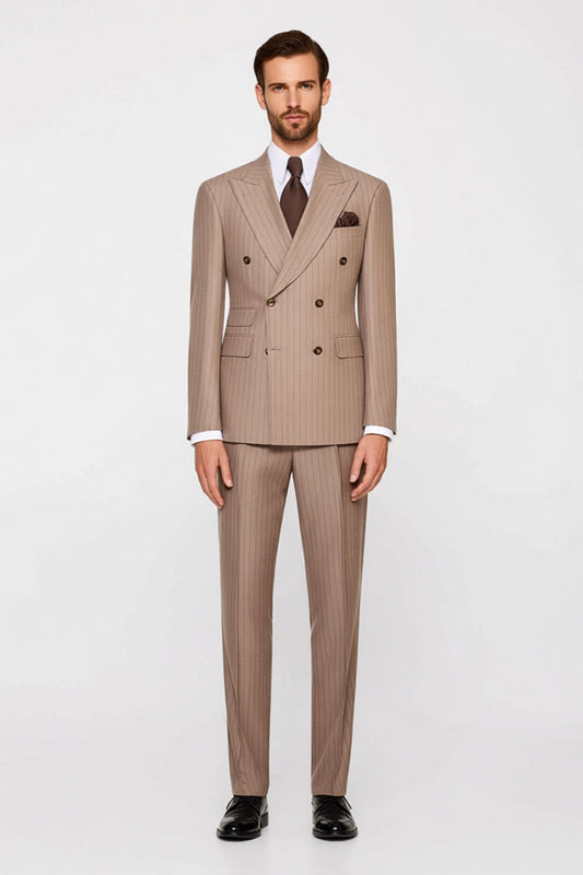 2 Piece Double Breasted Peaked Lapel Khaki Outfits