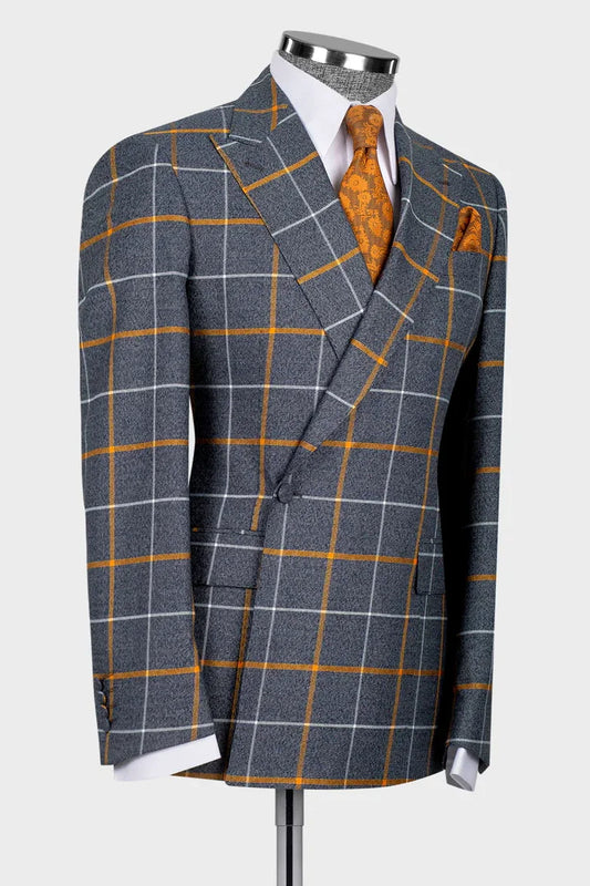 Gray 3-pieces Striped Peaked Lapel Men Suit
